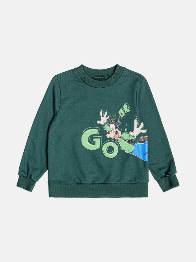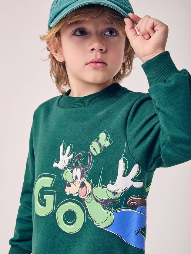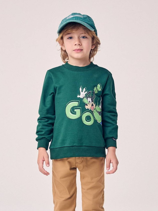 O Blusão Infantil com Estampa do Goofy traz a energia divertida do personagem em uma estampa frontal grande e cheia de movimento, ideal para quem curte looks com personalidade. Confeccionado em moletom macio e encorpado, oferece conforto térmico sem pesar, sendo perfeito para acompanhar a rotina dos pequenos. Os punhos e a barra em ribana ajudam a manter o ajuste no corpo, enquanto a modelagem soltinha garante liberdade para brincar, correr e aproveitar o dia. A cor verde intensa destaca ainda mais o visual e facilita combinações modernas. Uma peça prática, estilosa e com a autenticidade clássica da Disney.