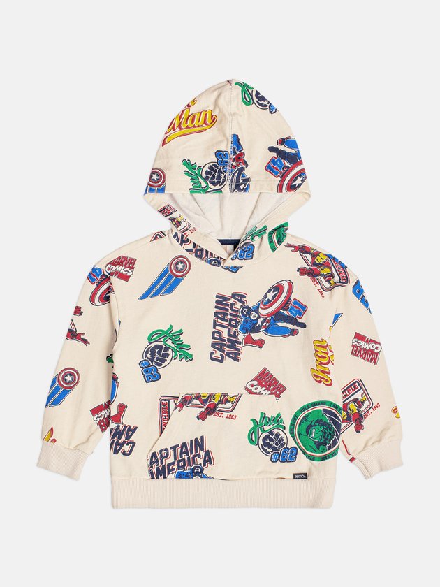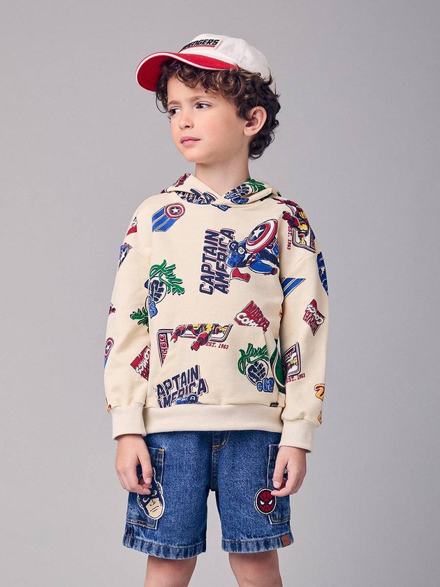 O Blusão Infantil Estampado da Marvel combina conforto e estilo com uma pegada super–heróica. Feito em malha macia, traz capuz, bolso frontal e uma estampa vibrante com ícones como Capitão América, Iron Man e Hulk. A peça é perfeita para dias mais frescos, garantindo um visual moderno e cheio de atitude para os pequenos fãs do universo Marvel.