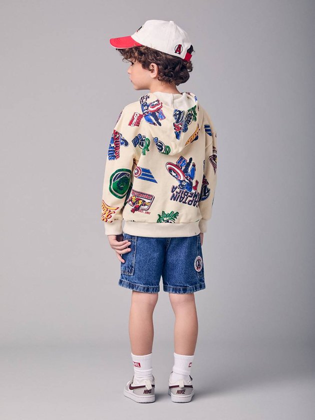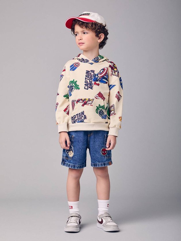 O Blusão Infantil Estampado da Marvel é a escolha ideal para crianças que amam aventuras e heróis. Confeccionado em malha macia, oferece conforto térmico e toque suave, perfeito para dias frescos. A estampa supercolorida destaca personagens clássicos como Capitão América, Iron Man e Hulk, criando um visual divertido e cheio de personalidade. O modelo conta com capuz e bolso canguru, garantindo praticidade no dia a dia. O acabamento nos punhos e na barra traz um caimento impecável, tornando o blusão perfeito para compor looks modernos com jeans, joggers ou Bermuda Menino Youccies.