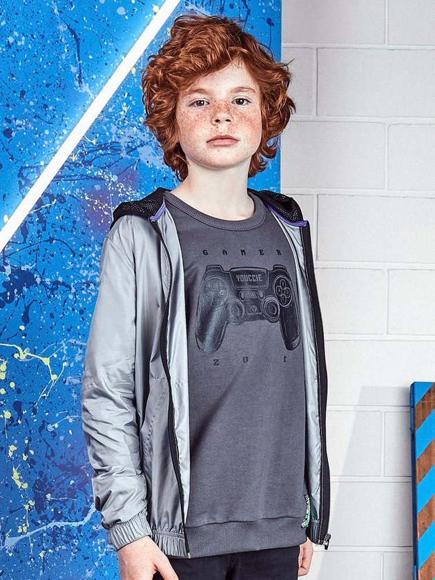 O Casaco Cinza Youccie foi confeccionado no conforto do moletom sem felpa, ideal para compor looks em dias frios ele pode ser usado com calça jeans ou de moletom, nos seus detalhes o casaco traz punhos e barra em ribana e estampa exclusiva na parte frontal. Composição: 100% algodão. Ref.: D0800