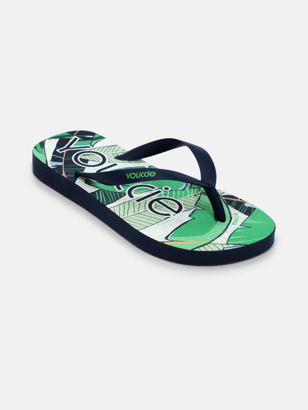 Perfeito para quem curte um mood tropical! Com estampa de folhagens em tons de verde e azul, esse flip é leve, confortável e feito com matéria-prima sustentável, vegana, reciclável, hipoalergênica e antibacteriana. Ref.: AD005