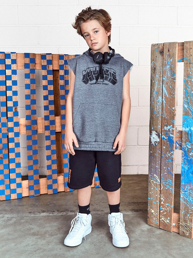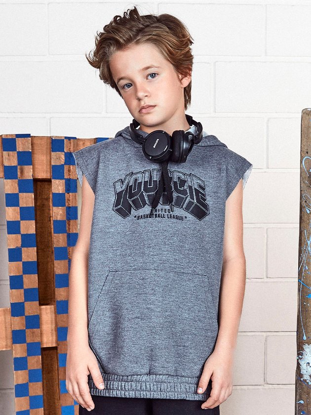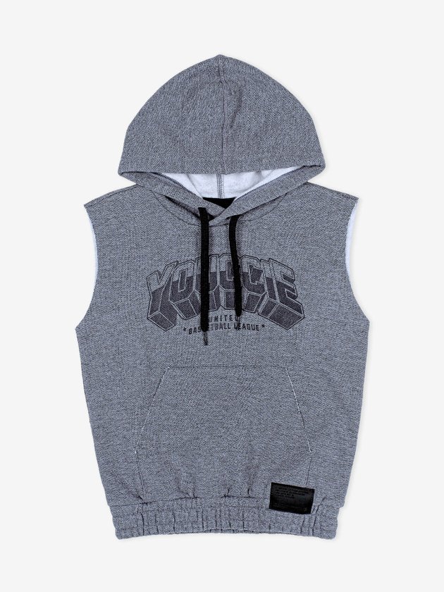 MOOD MODERNO - Colete com capuz cinza Youccie foi confeccionado no conforto do moletom sem felpa, uma peça diferenciada que compõe diversos looks modernos, pode ser usado com camisetas de cores neutras por baixo e calça. Em seus detalhes, além do capuz o colete também traz cadarço funcional, bolso canguru e estampa frontal. Composição: 50% algodão e 50% poliéster. Ref.: D0773