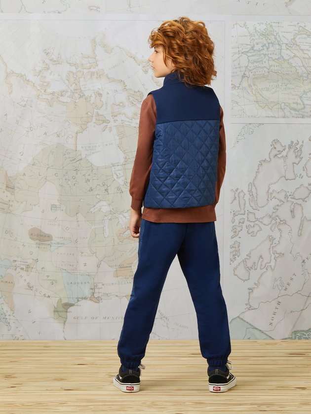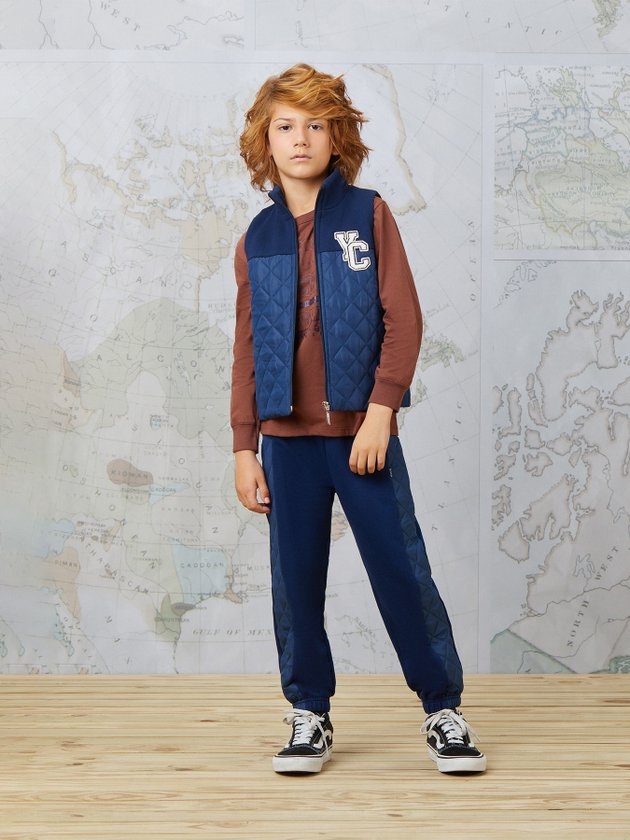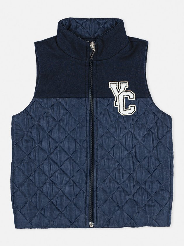 colete infantil de matelassê na cor azul marinho é uma opção moderna e versátil para complementar o visual dos pequenos. Com fechamento de zíper e patch aplicado na parte frontal, a peça tem um toque de personalidade e estilo. Além disso, o matelassê proporciona conforto e aquecimento, tornando-o ideal para os dias mais frios. Perfeito para combinar com diversas peças do guarda-roupa infantil, o colete é uma escolha prática e elegante. Composição - Moletom: 67% algodão e 33% poliéster. Matelassê: 100% poliéster. Ref.: I1030