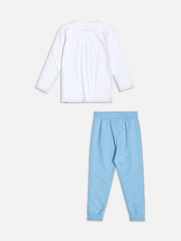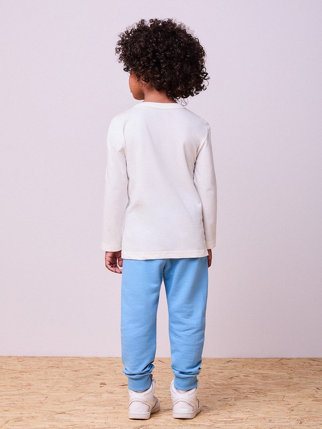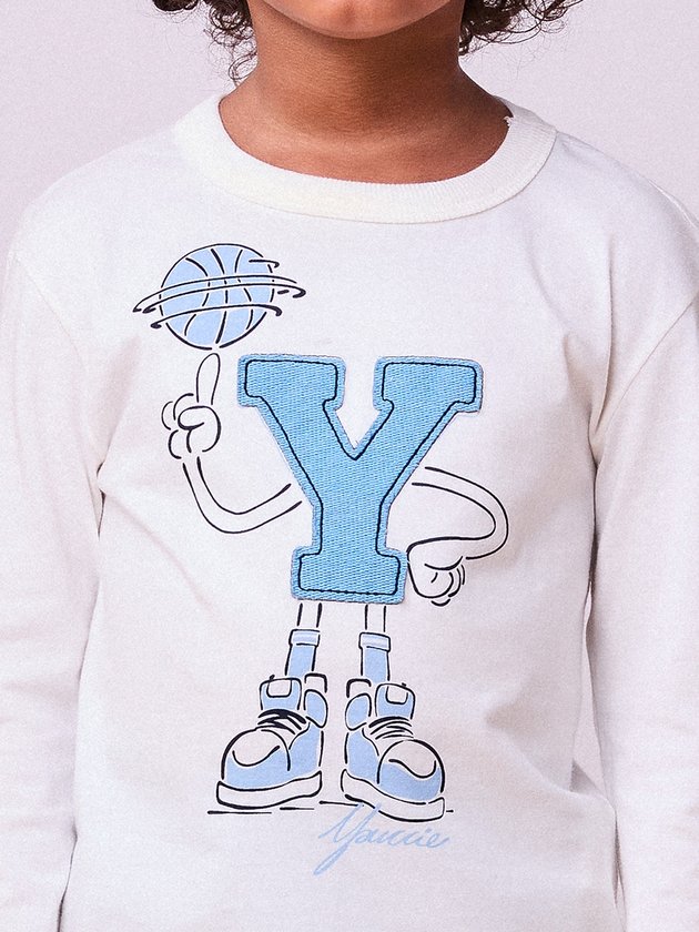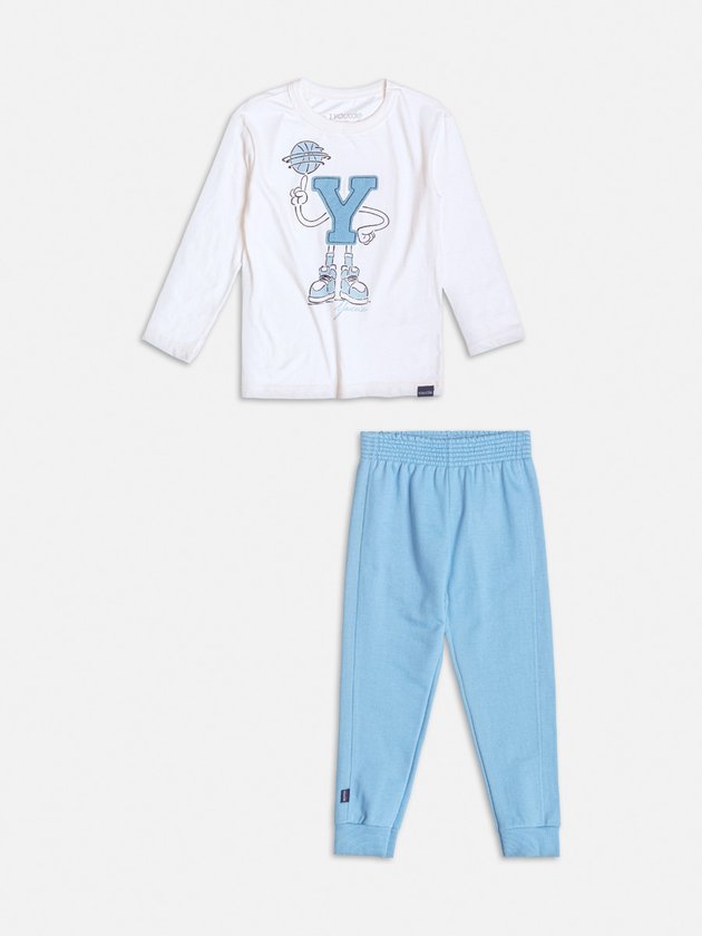 Inspirado no universo do basquete, este conjunto traz uma vibe descontraída e cheia de estilo. A camiseta com a letra "Y" estilizada e detalhes esportivos combina perfeitamente com a calça azul claro, garantindo conforto e atitude em qualquer ocasião.