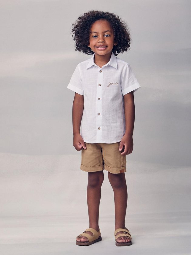 Sofisticação leve para o verão! O conjunto casual com bordado Youccie aposta em camisa de linho off white, com modelagem moderna e detalhes em botões e bordado delicado, trazendo um toque elegante ao visual. O short bege completa o combo com praticidade e acabamento impecável, criando uma proposta versátil para ocasiões especiais ou passeios à luz do dia. Um look fresh, confortável e cheio de personalidade para meninos que gostam de se vestir bem em qualquer momento.