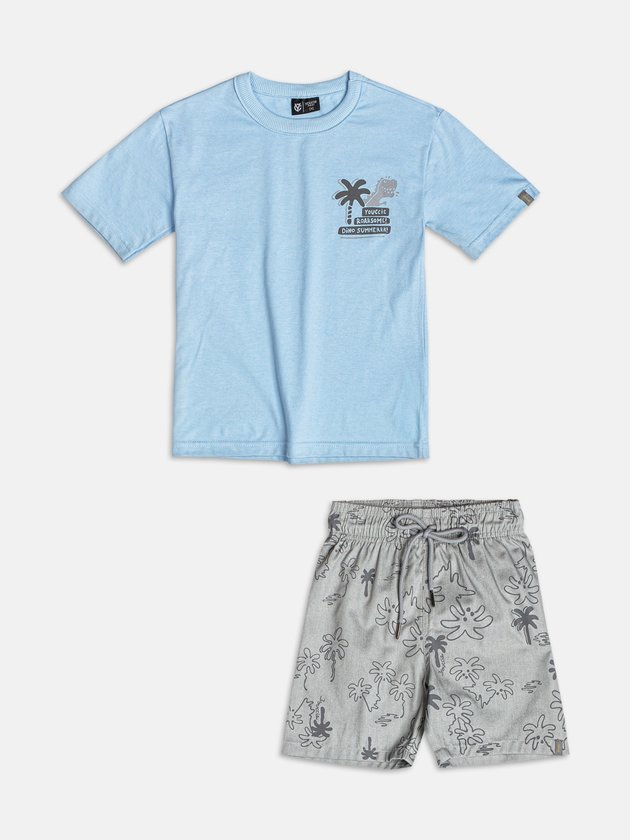 O Conjunto Infantil Masculino Azul Dino Summer traz a leveza do verão em uma proposta lúdica e cheia de personalidade. A camiseta azul clara em malha macia apresenta estampa localizada de dinossauro ao lado de coqueiro, transmitindo o mood divertido e tropical da coleção. A bermuda cinza com padronagem de palmeiras complementa o look de forma moderna, garantindo frescor, conforto e liberdade de movimentos. Juntos, os itens criam uma produção descolada, perfeita para passeios, momentos casuais e brincadeiras ao ar livre. Parte da coleção Youccie Verão 26 — Coast House, o conjunto traduz o estilo autêntico da marca, unindo moda, ludicidade e praticidade em uma peça que encanta mães e meninos.