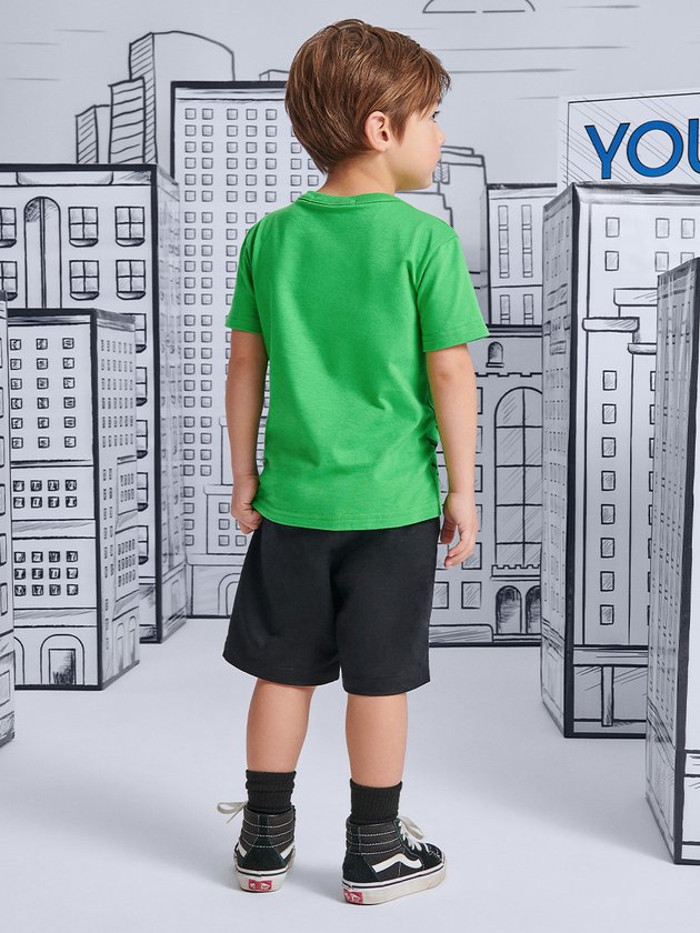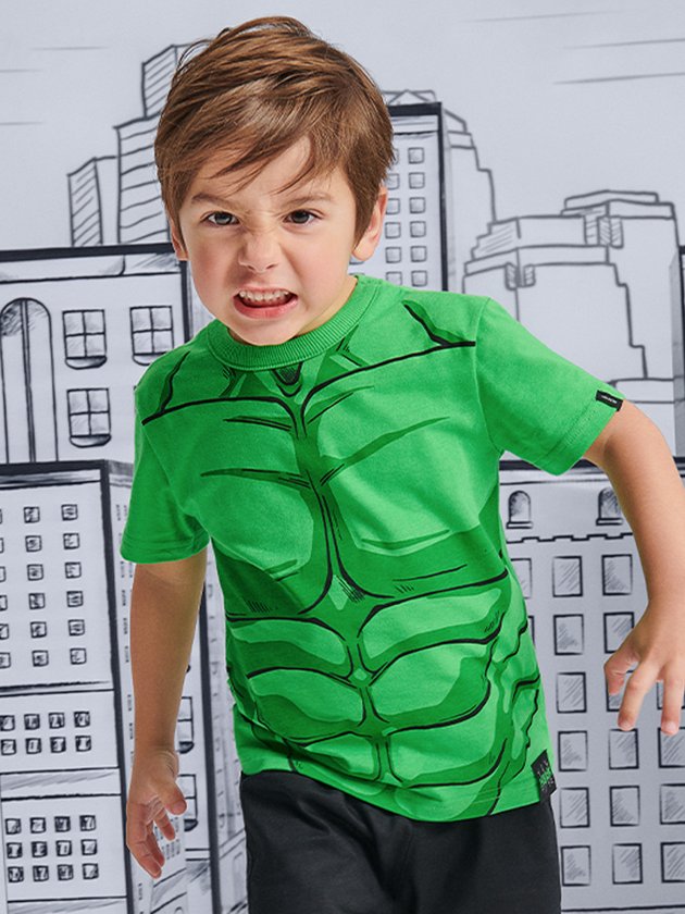 Entre na aventura com o Conjunto infantil Youccie inspirado no Hulk. Feito para os meninos destemidos, apresenta elástico na cintura para conforto total. Deixe a força interior brilhar enquanto os pequenos se transformam no poderoso herói verde e se divertem com seus superpoderes. Composição: 100% algodão. Ref.: I1594
