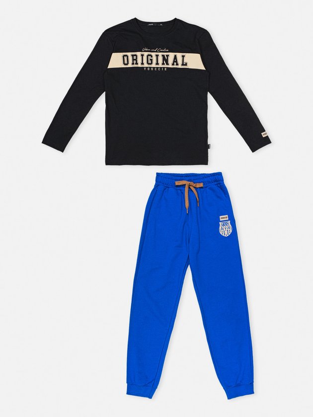 O conjunto "Original" da Youccie é a escolha ideal para os meninos que buscam um visual autêntico e moderno. Com blusa preta estampada com a palavra "ORIGINAL" em destaque e calça azul vibrante, essa combinação traz o equilíbrio perfeito entre conforto e estilo. Feito para momentos casuais ou aventuras urbanas, o conjunto oferece liberdade de movimento e muito charme. A peça ideal para destacar a originalidade e personalidade de quem veste.