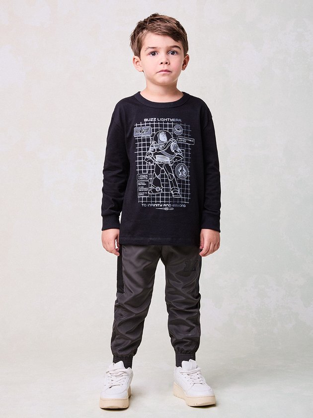 Inspirado no herói mais corajoso da galáxia, o conjunto do Buzz Lightyear combina blusa de manga longa com calça esportiva. Uma proposta cheia de atitude para explorar o infinito e além com conforto.