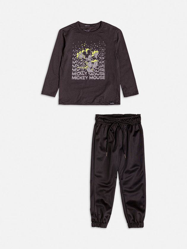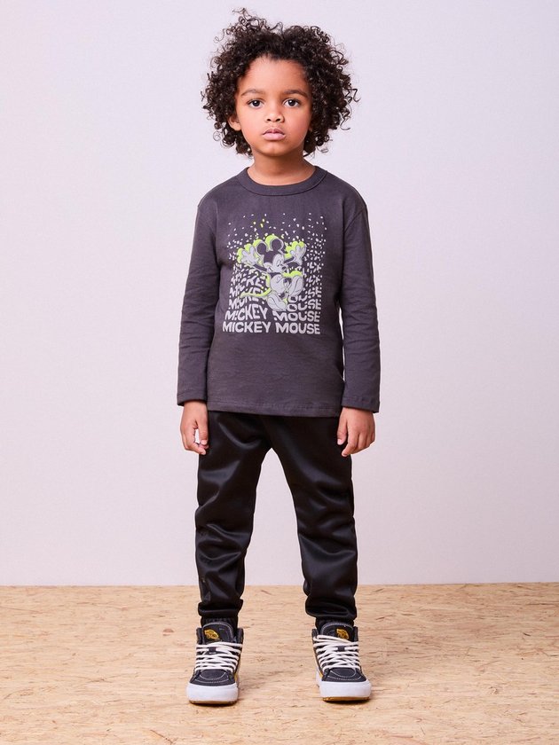 Cheio de atitude e com toque fashionista, o conjunto de moletom com estampa do Mickey e lettering vibrante é perfeito para visuais urbanos. O contraste entre o verde neon e o preto cria um mood contemporâneo e descolado. Ref.: I2130