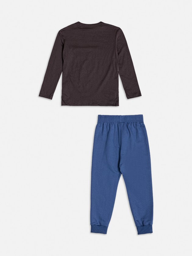 Com referência ao universo esportivo, o conjunto Monster Crew traz camiseta manga longa com estampa em alto contraste e calça azul. O visual perfeito para destacar a turma mais estilosa do pedaço. Ref.: I2155