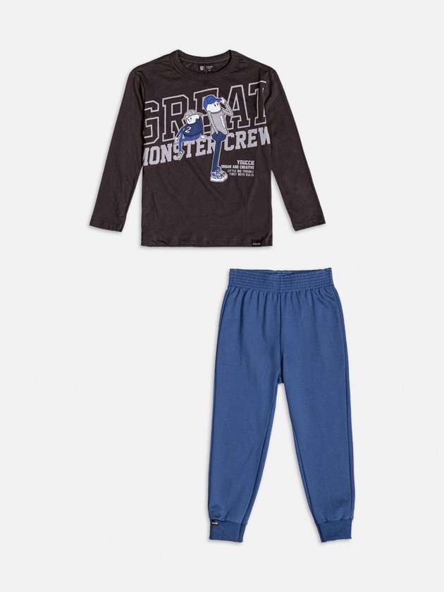Conjunto Manga Longa Grafite Monster Crew