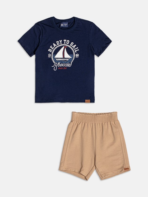 Para meninos prontos para zarpar em grandes aventuras, o conjunto marinho estampa navy aposta em mood náutico com muita personalidade. A camiseta azul marinho traz estampa exclusiva de barco e o lettering “Ready to Sail”, despertando o espírito explorador e criativo do verão. O short bege equilibra o visual com leveza e conforto, perfeito para passeios à beira-mar, viagens ou brincadeiras cheias de imaginação. Um combo moderno, estiloso e cheio de frescor para navegar pela estação com autenticidade. Ref.: I2384