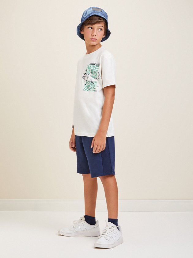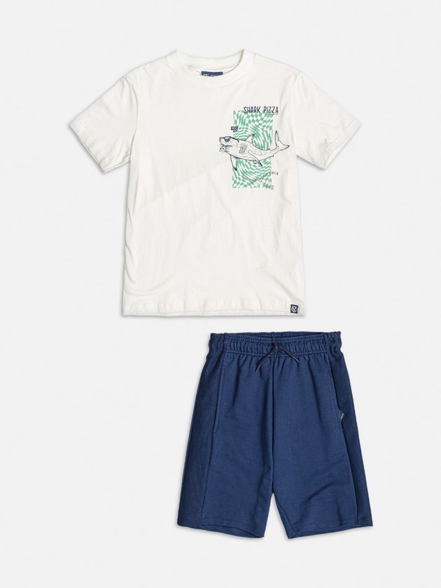 O conjunto infantil Youccie é perfeito para os dias quentes de verão. Composto por camiseta feita em malha e bermuda em moletom, apresenta estampa divertida de tubarão. O cós elástico e o cadarço garantem um ajuste confortável. Ideal para os meninos que buscam estilo e conforto em suas brincadeiras. Composição: 100% algodão. Ref.: D2277