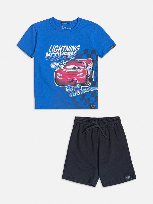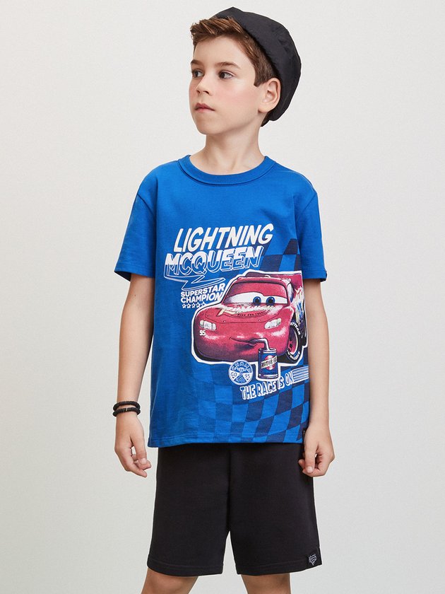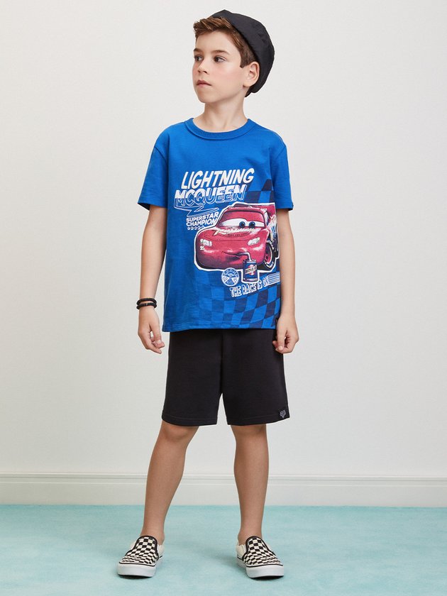 conjunto infantil Youccie, licenciado pela Disney, traz a magia do filme Carros para os meninos. A camiseta, feita em malha, exibe uma estampa cativante, adicionando um toque de diversão ao visual. A bermuda em moletom com elástico no cós oferece conforto e liberdade de movimento. Ref.: I1328