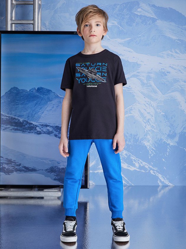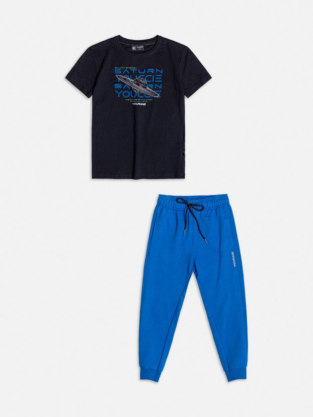 Desperte a imaginação com o conjunto Youccie para meninos, destacando a estampa Saturn na camiseta frontal, enquanto a calça de moletom, com elástico no cós, proporciona ajuste perfeito. A peça oferece estilo único e conforto inigualável. Composição: 100% algodão. Ref.: D2333