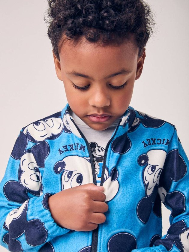 O Conjunto Infantil Azul Estampado do Mickey é perfeito para quem ama um visual alegre e confortável. A jaqueta conta com estampa full print do personagem, trazendo o charme clássico do Mickey em um fundo azul vibrante. O zíper frontal facilita o vestir, enquanto os punhos e barra ajustados garantem aconchego. A calça acompanha a mesma proposta, criando um conjunto harmonioso e estiloso. Feito para acompanhar a criança em dias mais frescos, ele oferece liberdade de movimento, maciez e muito estilo. É a escolha ideal para escola, passeios ou momentos de diversão, sempre com a magia Disney presente.