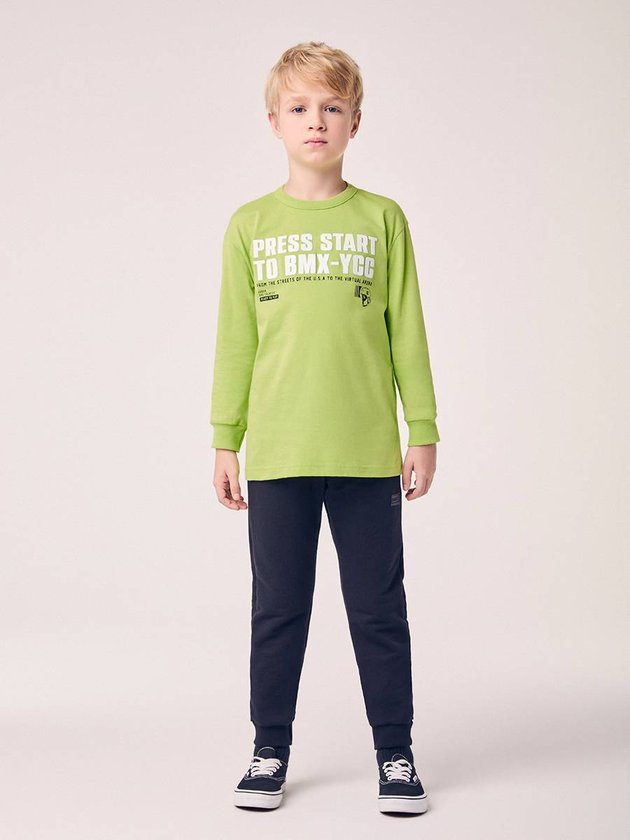 Cheio de energia e personalidade, o Conjunto Infantil com Estampa Youccie é a escolha perfeita para meninos modernos. A parte de cima, feita em malha leve na cor verde neon, possui estampa frontal em relevo com lettering e mangas longas, adicionando estilo e destaque ao visual. A calça preta em moletom completa o look com cós elástico, cadarço funcional e etiqueta decorativa Youccie, garantindo conforto e praticidade. Ideal para composições casuais ou urbanas, o conjunto une o melhor do conforto esportivo com o toque criativo da marca. Ref.: D3071