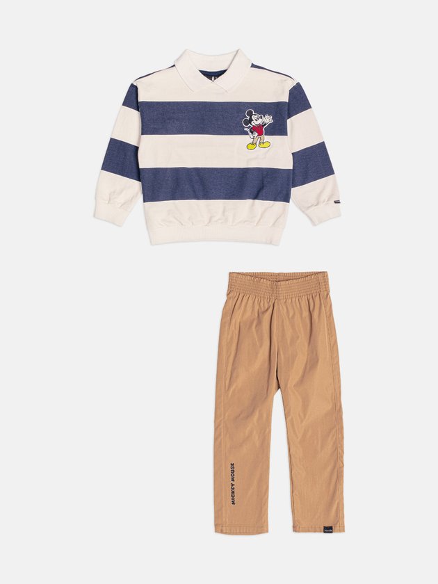 O Conjunto Infantil do Mickey com Golinha traz um visual arrumadinho com vibe casual. A blusa listrada em marinho e off possui golinha aplicada e patch do Mickey, deixando o look moderno e fofo ao mesmo tempo. A calça em tom caqui completa a produção com conforto e praticidade, ideal para acompanhar a criança em passeios, escola e momentos de diversão com muito estilo.