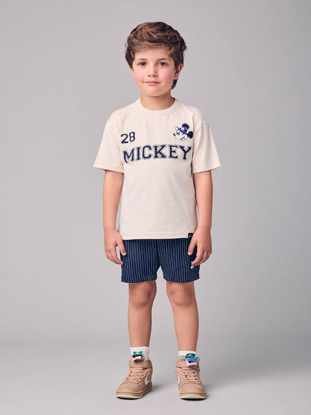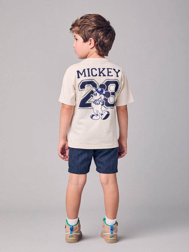 O Conjunto Infantil Manga Curta do Mickey Beisebolista entrega um visual esportivo cheio de personalidade, ideal para os pequenos que amam looks confortáveis e estilosos. A camiseta bege traz estampa frontal inspirada no beisebol, com o número 28 e o Mickey em arte vintage, deixando o visual moderno e nostálgico ao mesmo tempo. A Bermuda Menino Youccie listrada azul-marinho complementa o conjunto com toque clássico e ajuste confortável para brincar o dia todo. Fresquinho, leve e versátil, é uma opção perfeita para passeios, escola e momentos de diversão com liberdade total de movimento.