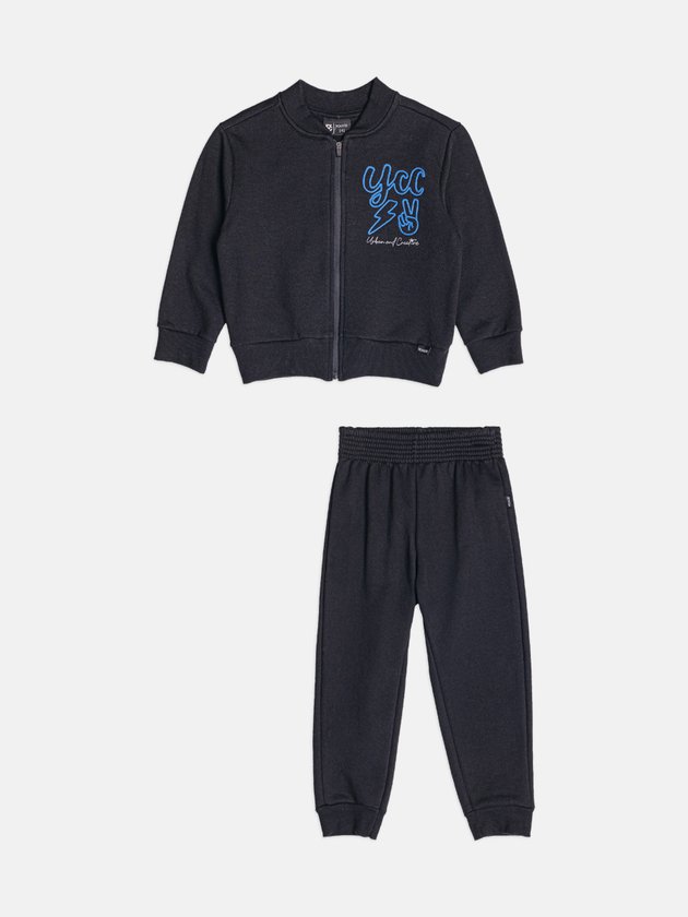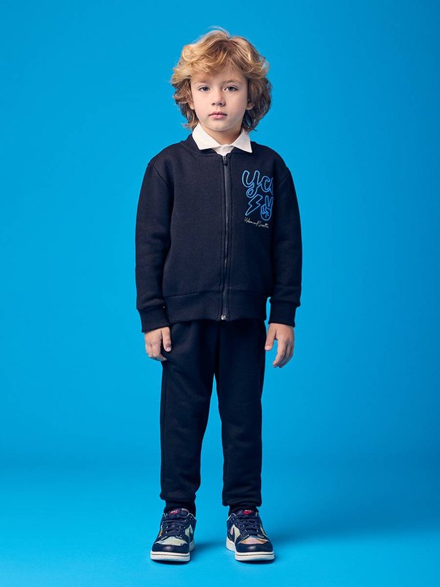 O Conjunto Infantil Preto com Bordado Youccie traz um visual clean, atual e confortável para acompanhar as crianças em qualquer momento. A jaqueta de moletom possui fechamento por zíper, gola esporte e bordado frontal em azul, que acrescenta identidade e estilo ao look. A textura macia do tecido garante aquecimento na medida certa, tornando a peça ideal para dias mais frescos. A calça preta combina na mesma proposta, com elástico confortável na cintura, punhos ajustados e caimento que permite movimento livre durante as brincadeiras, passeios e rotina escolar. É um conjunto versátil, fácil de combinar com tênis ou jaquetas extra e perfeito para quem busca praticidade sem abrir mão de estilo.