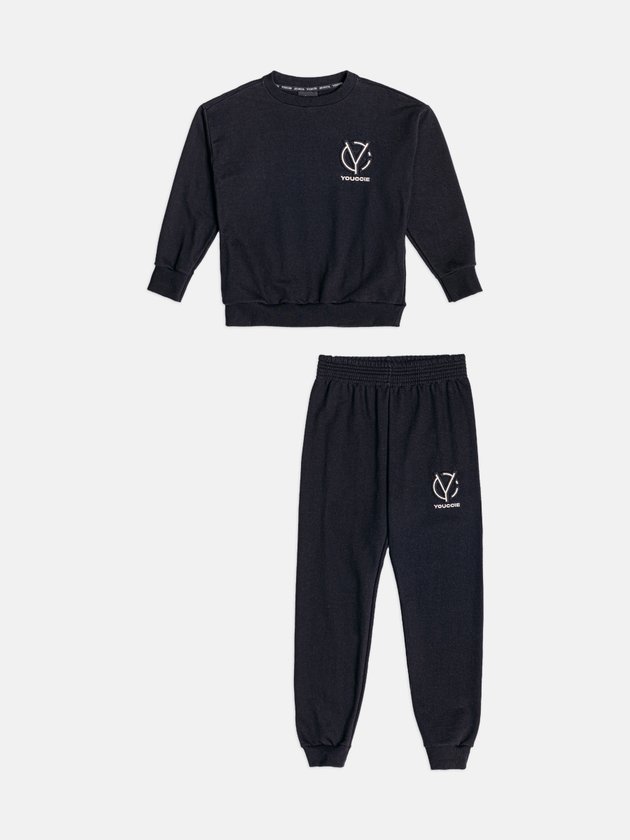 O Conjunto Infantil Preto com Bordado Youccie aposta no visual clean e contemporâneo que combina com tudo. Feito em moletom aconchegante, o modelo apresenta blusa e calça na cor preta, ambas com bordado contrastante do logotipo Youccie, garantindo identidade e estilo. A blusa possui barra e punhos em ribana, enquanto a calça conta com cós elástico e punhos ajustados para um caimento confortável. Ideal para o dia a dia, o conjunto é prático, moderno e cheio de personalidade.