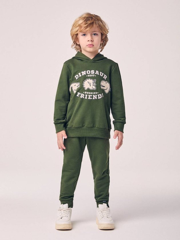 O Conjunto Moletom Infantil de Dino com Capuz é a escolha perfeita para aquecer a rotina das crianças com estilo e diversão. A blusa possui modelagem confortável, capuz estruturado e estampa central com dinos simpáticos, criando um visual lúdico que combina com o universo infantil. O moletom verde musgo deixa a proposta moderna e fácil de combinar com outros itens do guarda-roupa. A calça completa o conjunto com caimento confortável, punhos ajustados e tecido macio, ideal para acompanhar correria, brincadeiras e dias de escola. Uma opção prática, durável e cheia de personalidade para o inverno.