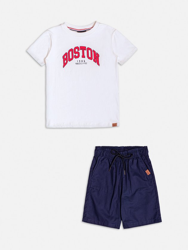 O conjunto "Boston 1986" é a escolha perfeita para dias mais quentes. A camiseta branca com estampa frontal e os shorts azul marinho criam um visual leve e estiloso. Com tecido macio e ajuste confortável, é ideal para passeios ou brincadeiras. Um look despojado e cheio de personalidade. Ref.: D2726