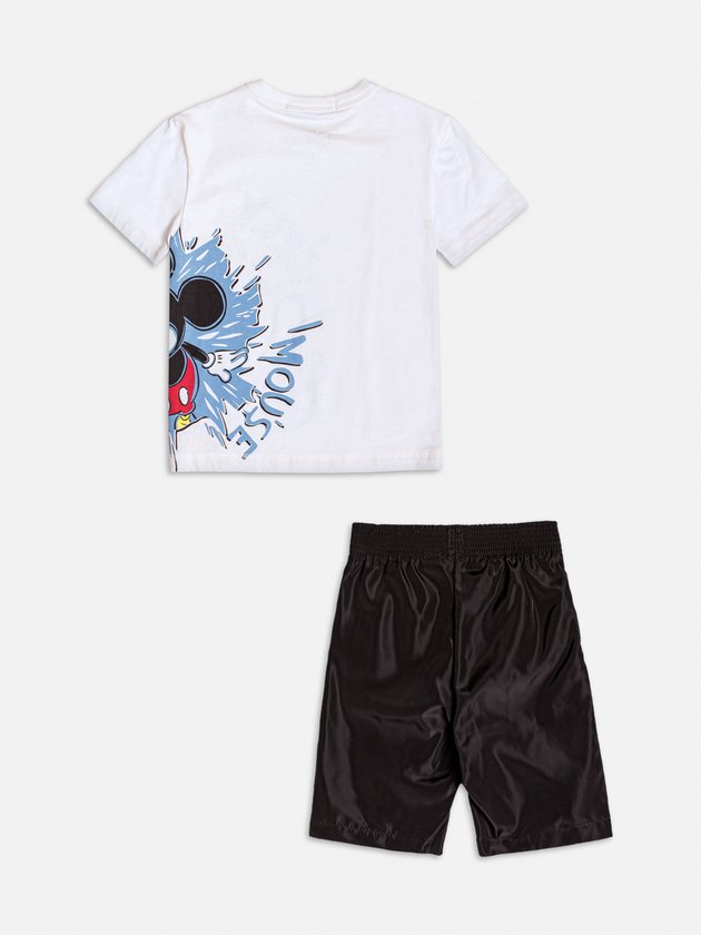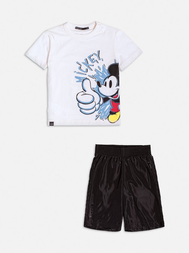 Transforme os dias quentes em momentos cheios de estilo com o conjunto Mickey! A camiseta branca de manga curta traz o personagem mais querido da Disney em uma estampa vibrante, combinada com a bermuda preta de toque acetinado, proporcionando conforto e praticidade para as aventuras do dia a dia. Ref.: I2072