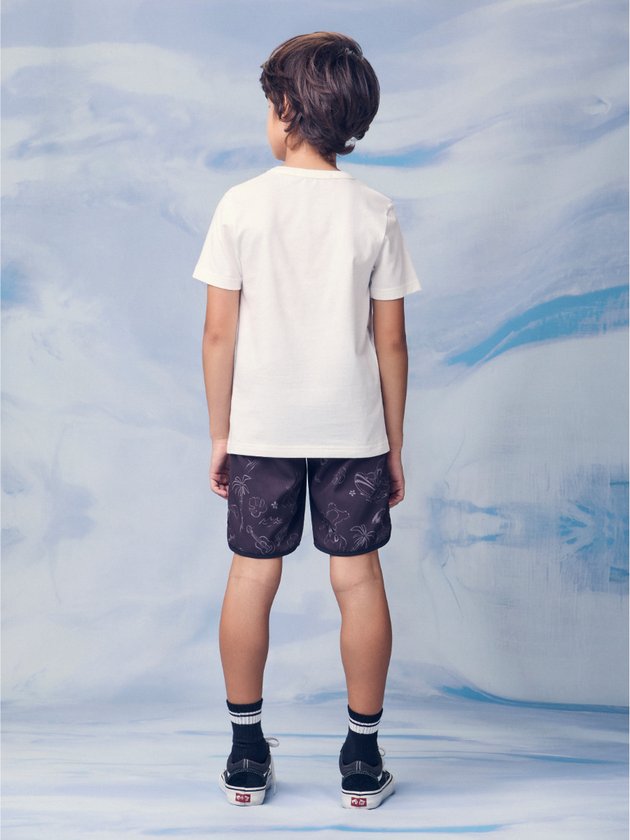 Esse conjunto é pura atitude! A camiseta apresenta uma estampa exclusiva com lettering e aplicação de Stitch em alto relevo, na parte frontal, reforçando a proposta lúdica e moderna da coleção. Feita em malha confortável, é uma peça licenciada Disney que combina estilo e autenticidade. A bermuda em tactel traz a estampa do Stitch surfista, reforçando o mood praiano e descontraído. O cós com elástico e cadarço proporciona ajuste perfeito e liberdade de movimentos, ideal para os dias de verão e aventuras à beira-mar.