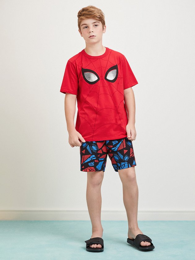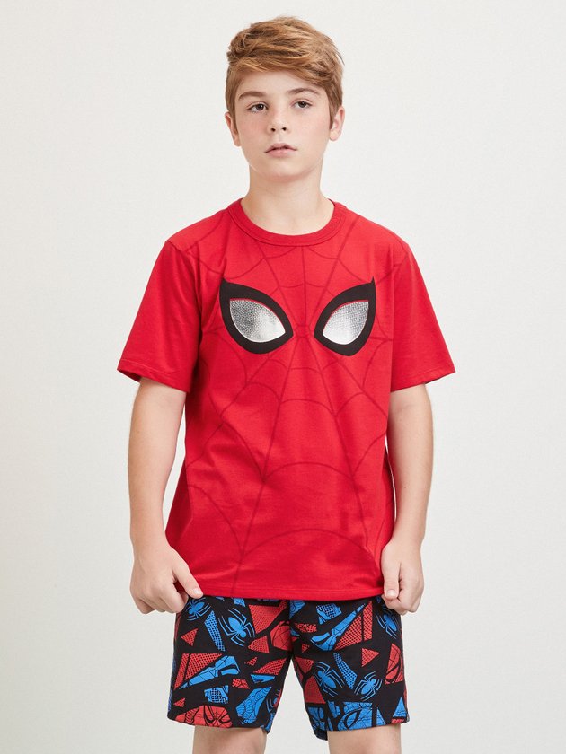 O conjunto de pijama Youccie com estampa do Homem-Aranha é a escolha ideal para meninos que desejam noites de sono cheias de aventura. Esta peça é toda estampada com o super-herói, tornando as noites mais emocionantes. Além disso, o cós elástico proporciona conforto. Composição: 100% algodão. Ref.: D2265
