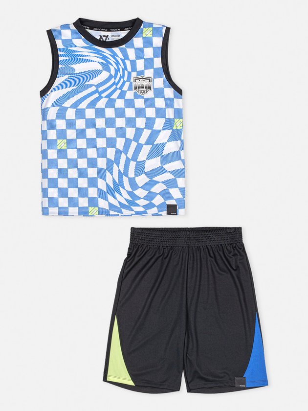 O conjunto infantil Youccie foi confeccionado em malha esportiva, muito confortável e é ideal para acompanhar os meninos em dias de muita diversão. Composto por regata e bermuda, traz em seus detalhes frente com estampa exclusiva quadriculada e acabamentos contrastantes, na parte de baixo a bermuda conta com elástico no cós e etiqueta clips. Composição: 100% poliéster. Ref.: D1464