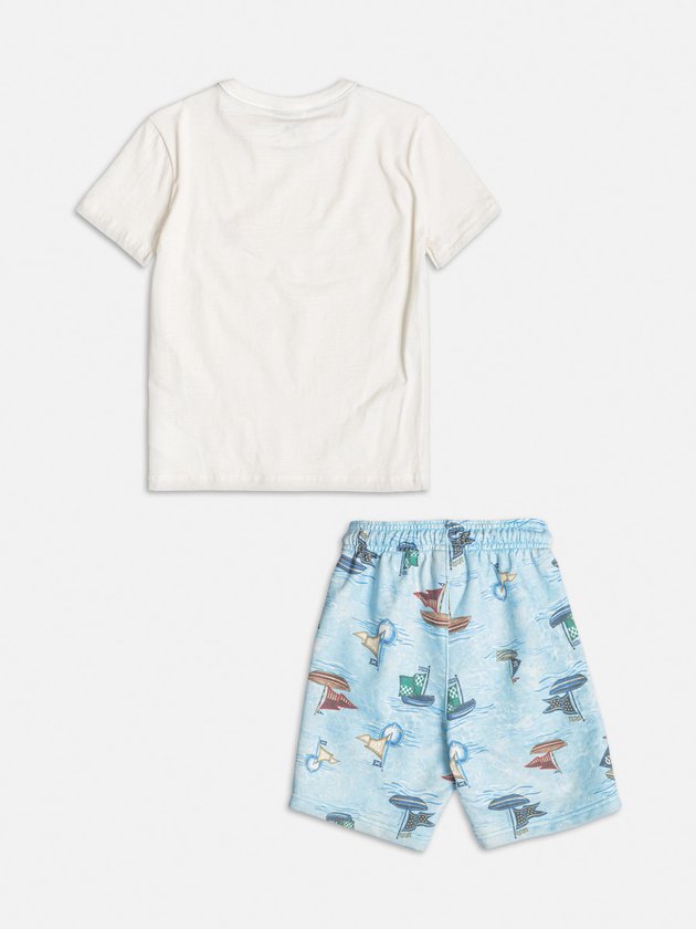 O conjunto infantil Youccie é a opção ideal para o dia a dia dos meninos. A camiseta foi confeccionada em malha, possui estampa na parte da frente que adiciona um toque de personalidade ao visual. Complementando o conjunto, a bermuda com estampa náutica, com cós elástico e cadarço, garante conforto durante as atividades. Composição - Camiseta: 100% algodão. Bermuda: 60% algodão e 40% poliéster. Ref.: I1551