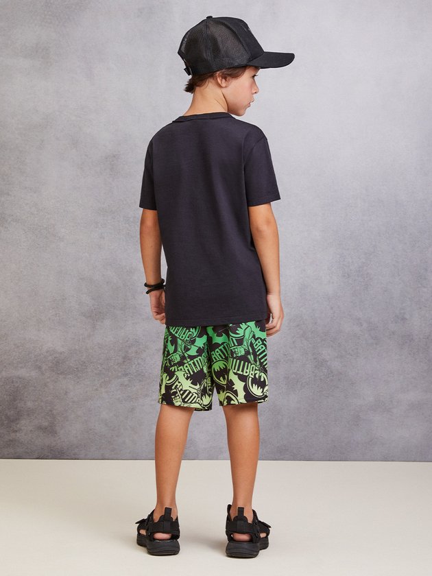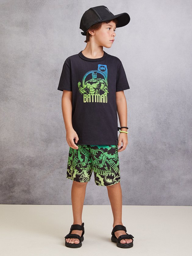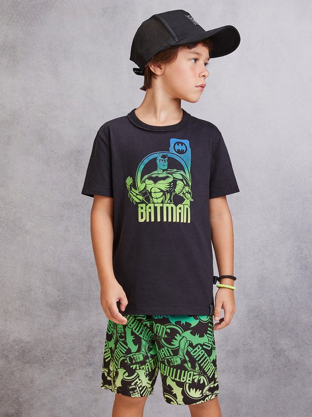 Este conjunto infantil de camiseta e bermuda do Batman é o presente perfeito para qualquer fã do icônico super-herói. Feito de materiais de alta qualidade, este conjunto é confortável e durável. A camiseta estampada com o Batman é divertida e estilosa, e a bermuda de cores vivas é perfeita para brincar ao ar livre. Este conjunto é uma ótima maneira de seu filho se divertir e ao mesmo tempo continuar estiloso. Composição - Camiseta: 100% algodão. Bermuda: 100% poliéster. Ref.: I1189
