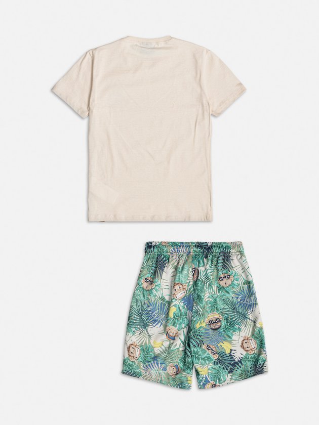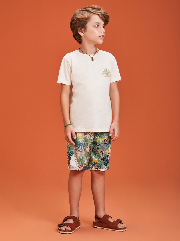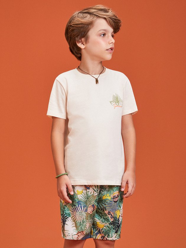 O conjunto infantil Youccie é perfeito para momentos de diversão dos meninos. Composto por uma camiseta feita em malha com gola em ribana, enquanto a bermuda é estampada e possui cós com elástico e cadarço ajustável. Composição - Camiseta: 100% algodão. Bermuda: 97% poliéster e 3% elastano. Ref.: I1341