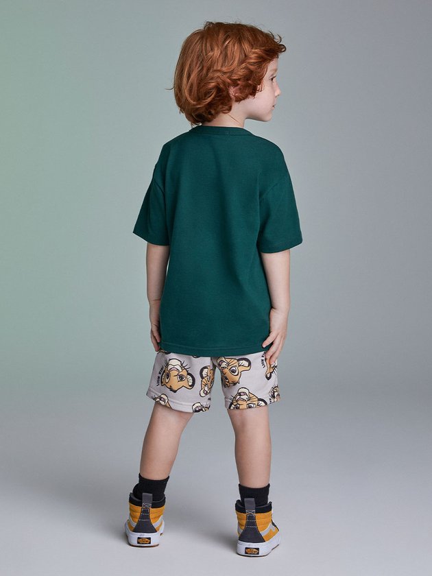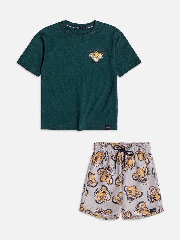 Hakuna Matata, é lindo dizer! Eleve o estilo do seu pequeno com o conjunto infantil de menino em collab com a Disney. O conjunto é composto por uma camiseta e bermuda, que são ideais para uso no dia a dia e momentos de diversão. A camiseta na cor verde folha possui patch do Simba, o leãozinho mais amado da Disney. A bermuda também conta com o personagem estampado por toda a peça, além de elástico no cós e amarração através de cadarço regulável. Os meninos vão adorar o visual descolado e cheio de personalidade. Composição - Camiseta: 100% algodão. Bermuda: 70% poliéster e 30% algodão. Ref.: I1571