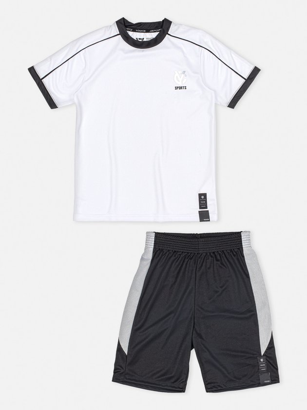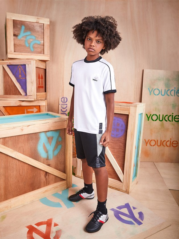 O conjunto infantil Youccie foi confeccionado em malha esportiva, muito confortável e é ideal para acompanhar os meninos em dias de muita diversão. Composto por camiseta e bermuda, traz em seus detalhes etiqueta decorativa, elástico no cós e filete contrastante na lateral. Composição: 100% poliéster. Ref.: D1372