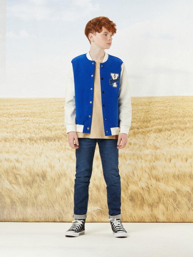 A jaqueta infantil Youccie veio para deixar os meninos estilosos montando looks irados para o frio. Foi desenvolvido em lã batida com mangas de fake leather, além de ser quentinha traz detalhes em ribana branco e bolsos laterais funcionais. Finalizada com etiqueta personalizada da marca. Composição: 93% poliéster, 6% viscose e 1% elastano. Mangas: 100% viscose. Ref.: D1637
