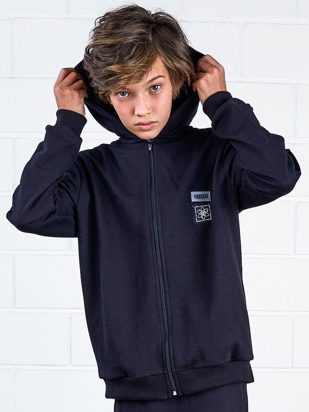 A Jaqueta Infantil Youccie confeccionada no conforto do moletom sem felpa com modelagem básica. Possui detalhes em ribana, capuz com estampa, abertura em zíper e duas etiquetas decorativas na parte da frente. Ideal para compor looks de inverno. Composição: 100% Algodão. Ref.: D1013