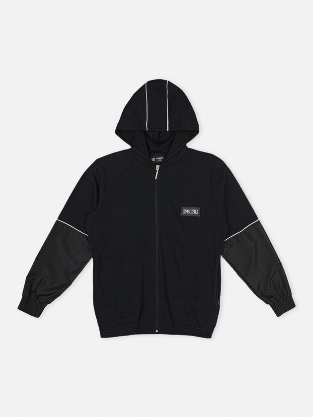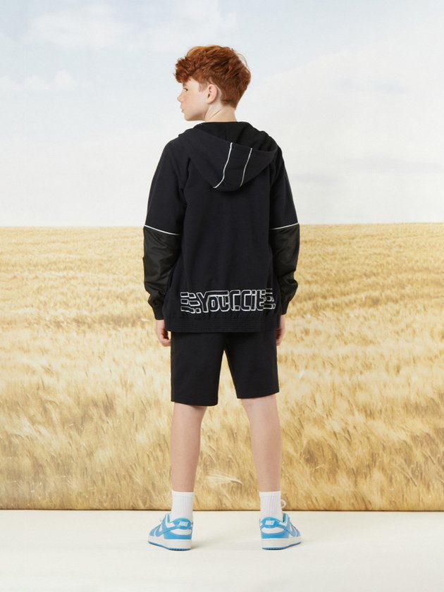 Desenvolvido em moletom preto, a jaqueta infantil Youccie traz conforto e abertura frontal com zíper aumentando a praticidade da peça. A estampa da logo da Youccie nas costas dá um visual irado para compor looks pro dia a dia. Também conta com etiqueta emborrachada e recortes em tecido preto. Composição – 100% algodão. Recortes: 100% poliéster. Ref.: D1445