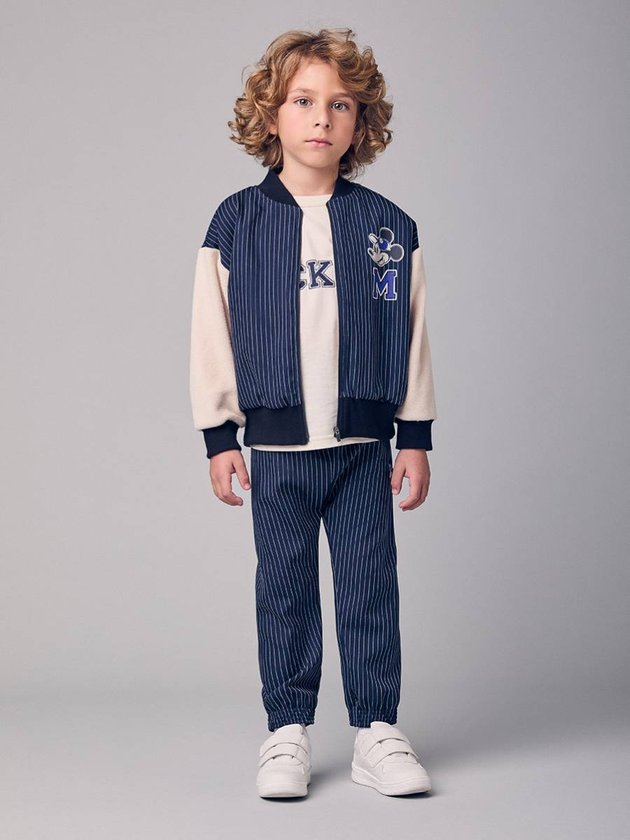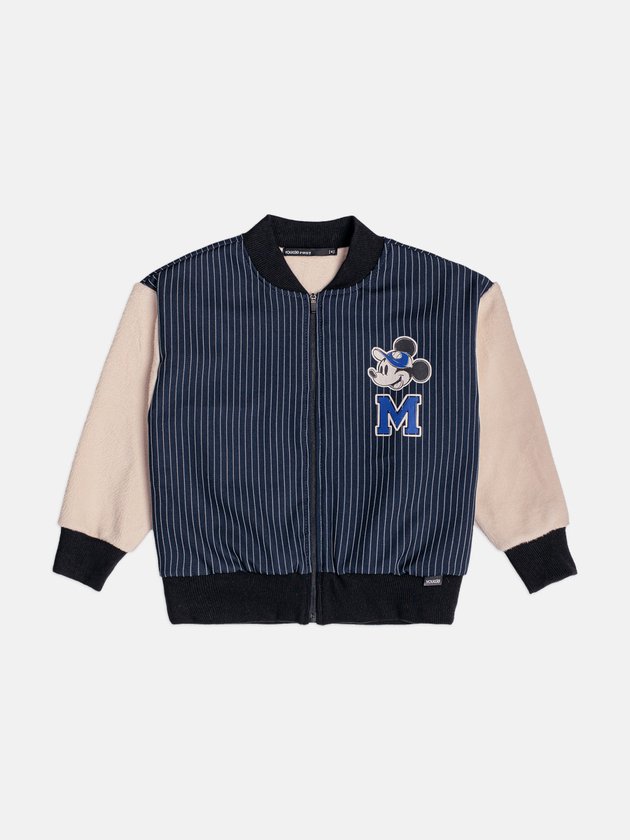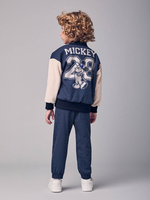 A jaqueta bomber infantil com patch do Mickey une conforto e estilo em uma peça superversátil. O corpo listrado em azul-marinho cria um visual moderno, enquanto as mangas claras garantem contraste que destaca ainda mais o look. O patch do Mickey deixa tudo mais divertido e cheio de personalidade, do jeito que as crianças amam. A modelagem bomber traz gola, punhos e barra ajustados, favorecendo o caimento e mantendo a peça aconchegante nos dias frescos. Com fechamento em zíper e tecido confortável, combina facilmente com jeans, calças casuais e camisetas básicas, criando produções práticas e estilosas.