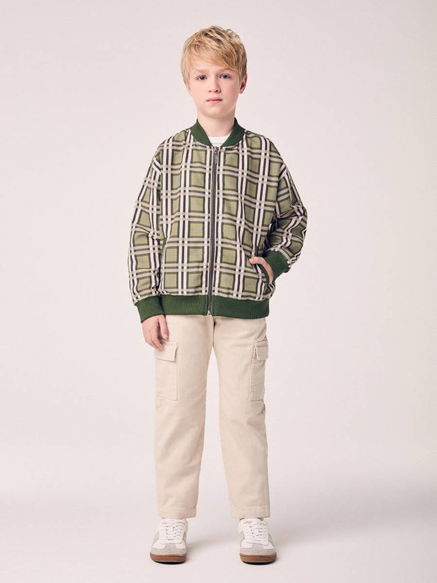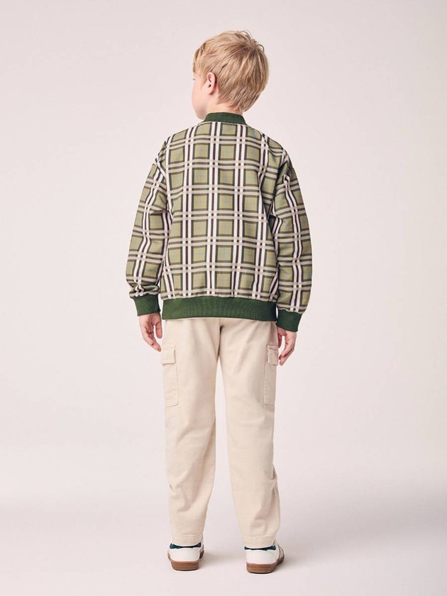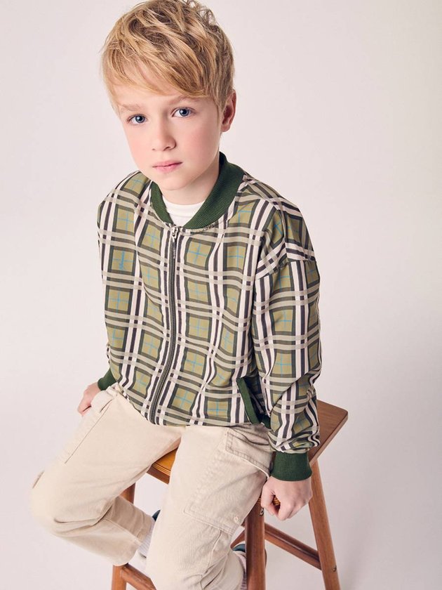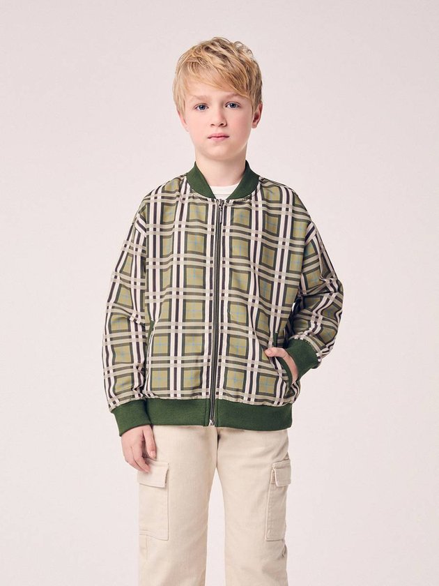 Inspirada no estilo preppy com toque urbano, a Jaqueta Bomber Xadrez Infantil Youccie traz um visual sofisticado e descolado ao mesmo tempo. Confeccionada em tecido leve, apresenta estampa xadrez em tons de verde, marrom e bege, com acabamento em ribana verde nos punhos, gola e barra. O fechamento por zíper garante praticidade, enquanto o caimento soltinho oferece conforto e liberdade de movimento. Versátil, é ideal para compor looks modernos, combinando com jeans, sarja ou calças jogger, traduzindo o DNA criativo e contemporâneo da marca Youccie. Ref.: D2988
