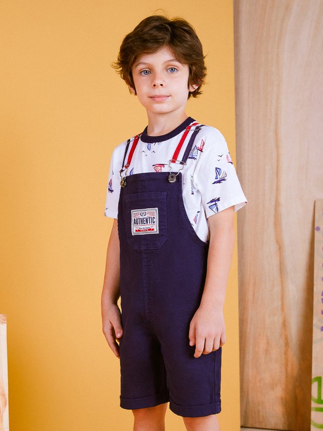 Jardineira De Sarja Azul Marinho