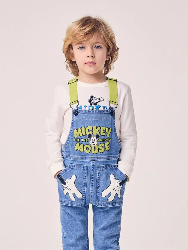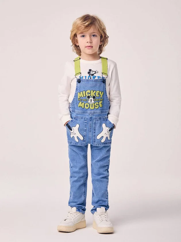A Jardineira Jeans Infantil do Mickey Mouse é perfeita para quem curte um visual cheio de personalidade. Feita em denim macio e confortável, traz estampa frontal do Mickey com lettering vibrante e um charme extra nos bolsos traseiros, que recebem aplicações divertidas das luvas clássicas do personagem. As alças ajustáveis em elástico neon deixam o look moderno e garantem caimento confortável durante o dia inteiro. A peça combina facilmente com camisetas básicas, blusas coloridas e tênis, sendo ideal para brincar, passear e montar produções estilosas com o toque mágico da Disney. Ref.: I2541