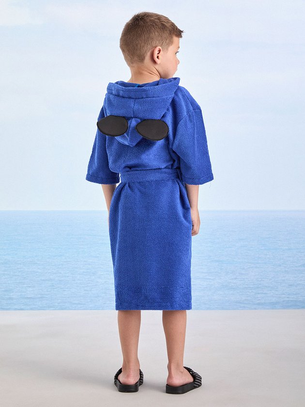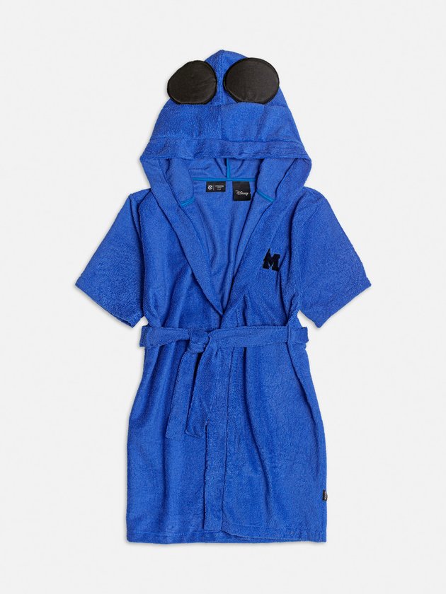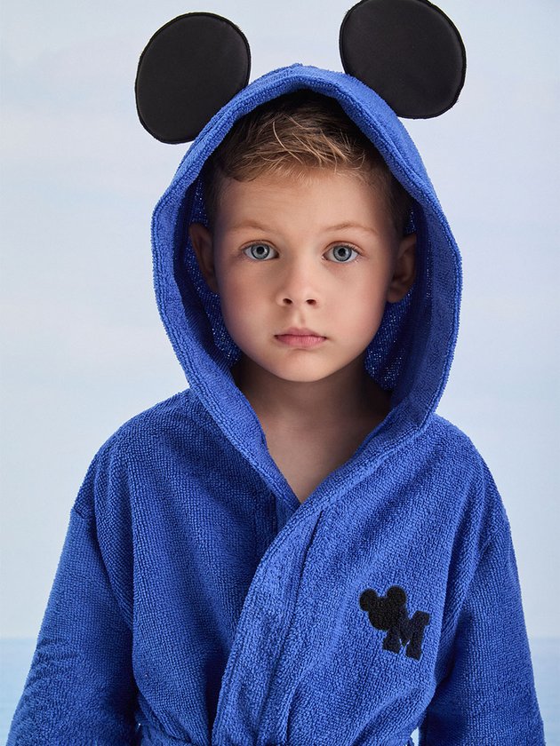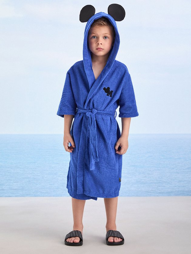 Este roupão azul do Mickey Mouse é o complemento perfeito para o pós-banho ou momentos de relaxamento em casa. Com um patch exclusivo com a letra "M" de Mickey e orelhas no capuz, este roupão oferece conforto e uma dose extra de diversão. Feito de material macio e aconchegante, é ideal para manter os pequenos quentinhos e estilizados. Ref.: I1821