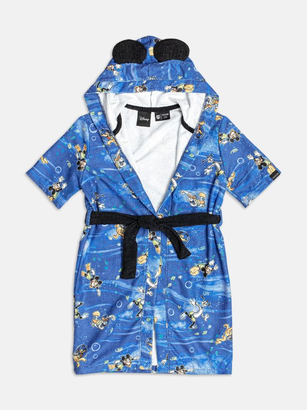 O Roupão Estampado Infantil Masculino do Mickey Mouse é a combinação perfeita entre praticidade, conforto e estilo para os meninos. Confeccionado em tecido leve e macio, garante bem-estar após o banho, piscina ou momentos de lazer em casa. Com estampa divertida do personagem mais icônico da Disney em tons vibrantes de azul, a peça traduz o espírito lúdico e criativo da coleção Youccie Verão 26 — Coast House. O capuz adiciona charme e aconchego, enquanto o cinto ajustável oferece praticidade no uso diário.Mais do que funcional, o roupão se destaca como uma peça moderna e cheia de personalidade, que encanta mães e meninos e transforma a rotina em um momento divertido e fashion.
