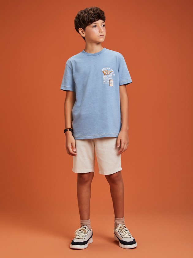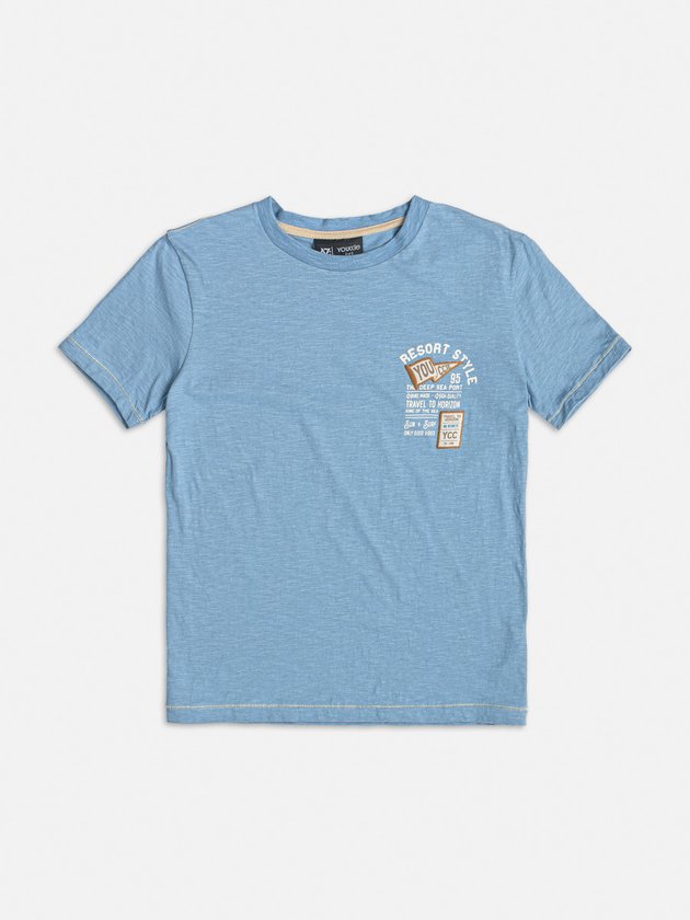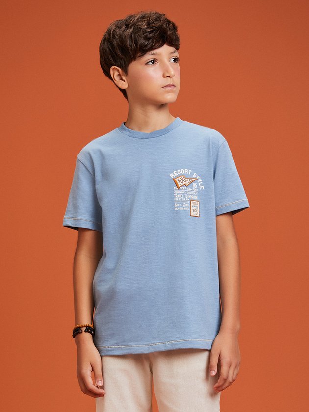 A camiseta bege Youccie é confeccionada em malha azul, proporcionando conforto ao vestir. Com modelagem confortável, é prática e versátil, ideal para diversas ocasiões. Possui estampa na frente dando um toque mias estiloso. Composição: 100% algodão. Ref.: D1769