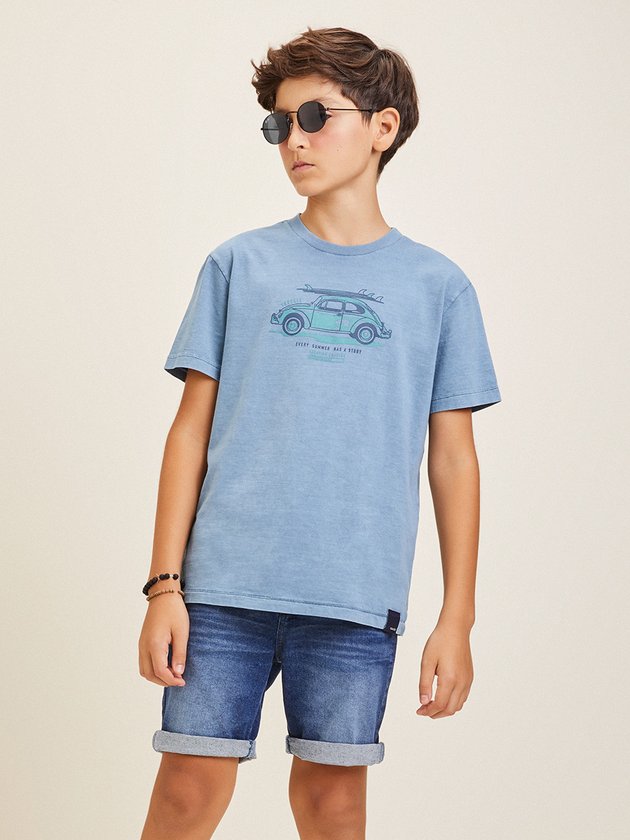 A camiseta "Summer" traz uma vibe descontraída com sua estampa de carro vintage e prancha de surfe. Confeccionada em tecido leve e confortável, é ideal para meninos que curtem aventuras ao ar livre. A cor azul suave é fácil de combinar, tornando essa peça perfeita para os dias mais quentes. Seja para passeios na praia ou momentos de lazer, essa camiseta garante estilo e conforto.