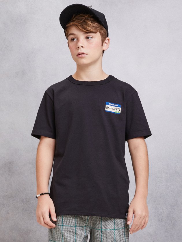 A camiseta preta da Youccie foi desenvolvida em malha com estampa frente e costas, além de ser uma peça estilosa traz conforto para os meninos. Finaliza com uma etiqueta decorativa na barra frente, unindo o estilo street wear com detalhes especiais. Composição: 100% algodão. Ref.: D1821