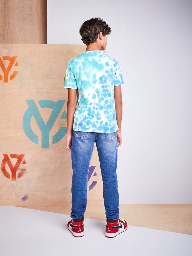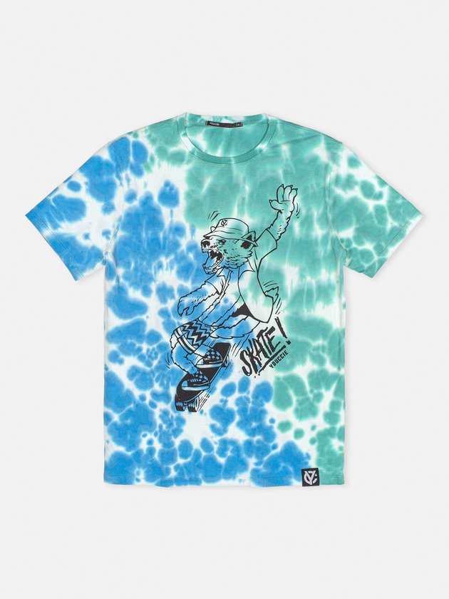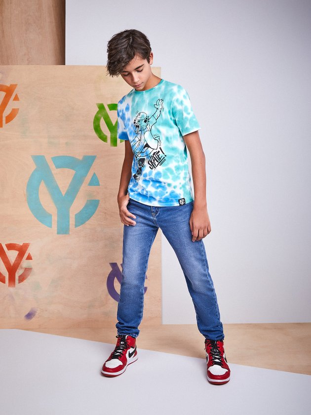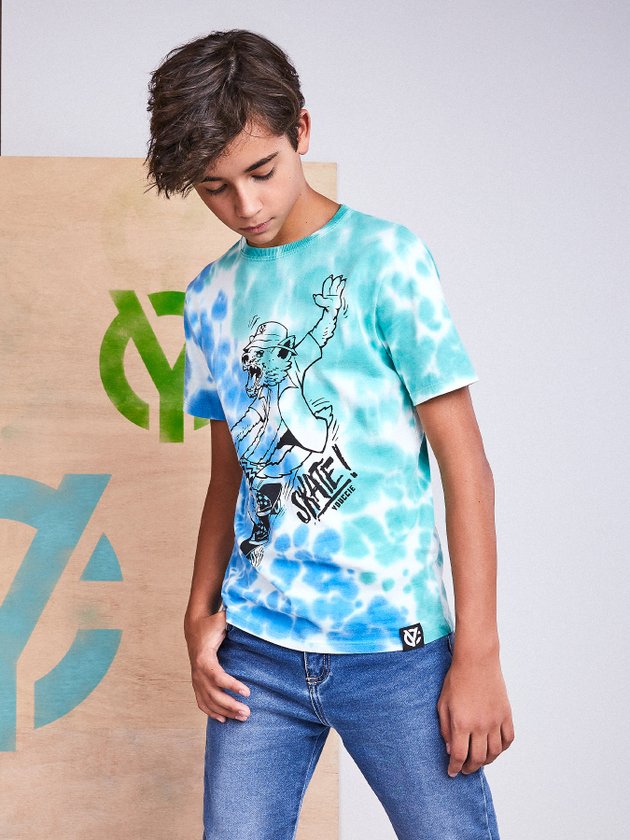 A Camiseta Youccie possui lavação Tie-Dye com estampa exclusiva de skate que os meninos vão pirar. Em seus detalhes traz modelagem básica e etiqueta clips Youccie costurada na barra. Uma peça prática para o dia a dia com caimento perfeito no corpo. Composição: 100% Algodão. Ref.: D1102
